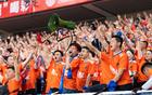 身着战国袍的荆州队球迷在看台上为球队加油助威。新华社记者伍志尊 摄
